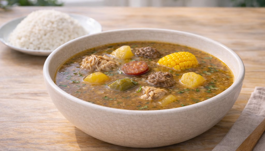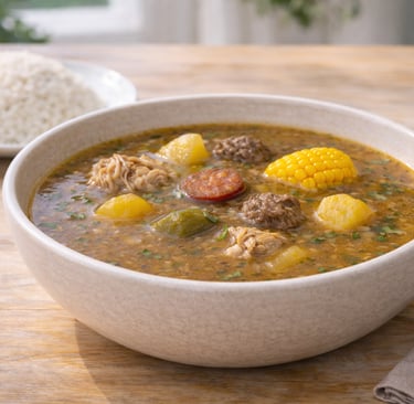 A thick stew cooked for hours with different meats, root vegetables, corn, and plantains. Heavy, rich, and filling. Usually prepared in large pots. If it’s available, it’s worth ordering.